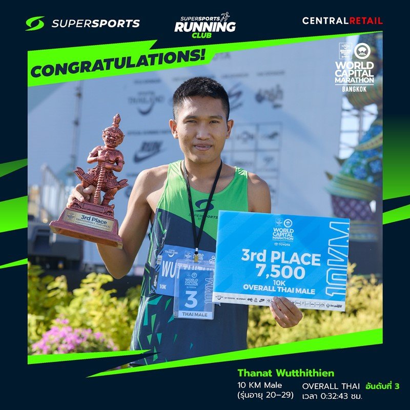 🏃♂️ Thanat Wutthithien 🥉 อันดับ 3 > Overall Thai Male – 10 KM (รุ่นอายุ 20–29) ⏱ 0:32:43 ชม.