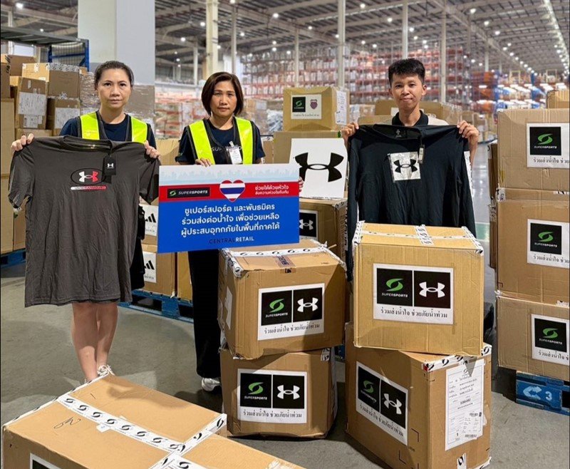 Supersports ร่วมกับพันธมิตร Puma Thailand, adidas Thailand, Under Armour และ K-Swiss ร่วมส่งเสื้อผ้าและรองเท้า เพื่อช่วยเหลือผู้ประสบภัยในพื้นที่ภาคใต้